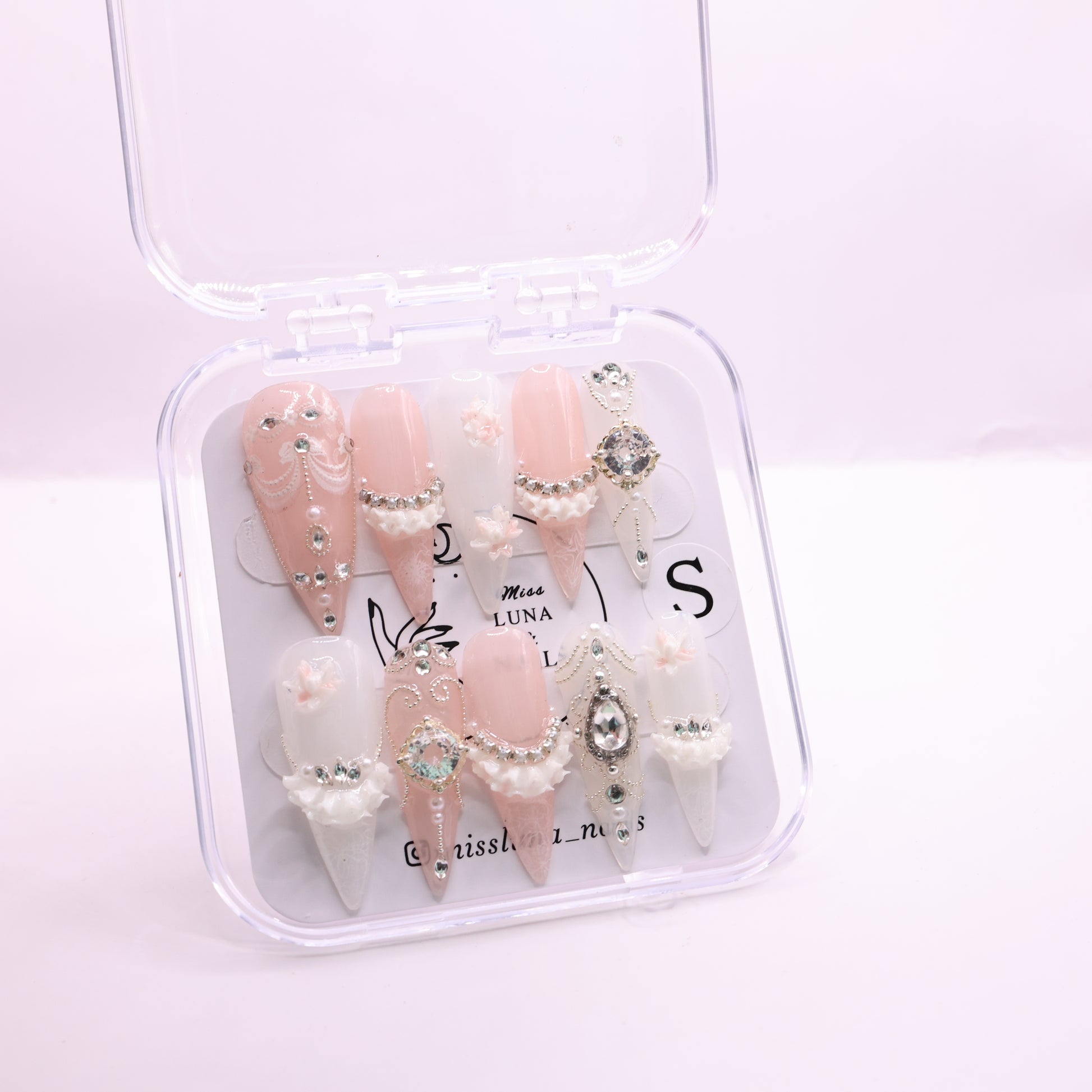 All sales are final. missluna_nails does not accept returns or exchanges as all our nails sets are custom and frequently made to order. If you experience a quality issue with your order, please reach out for assistance.